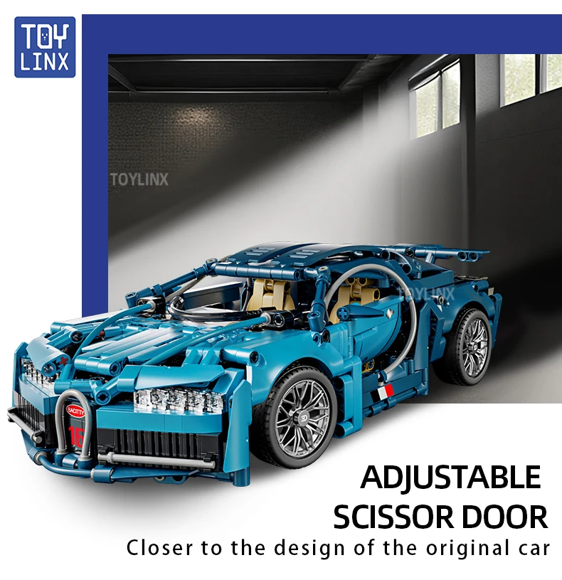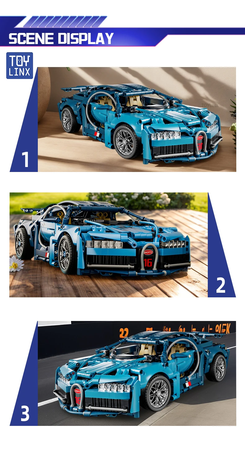 1:14 Blue Bugatti Car 1144PCS Building Blocks and Toy Construction Model Set for Kids Adults Christmas Easter Or Halloween Gift